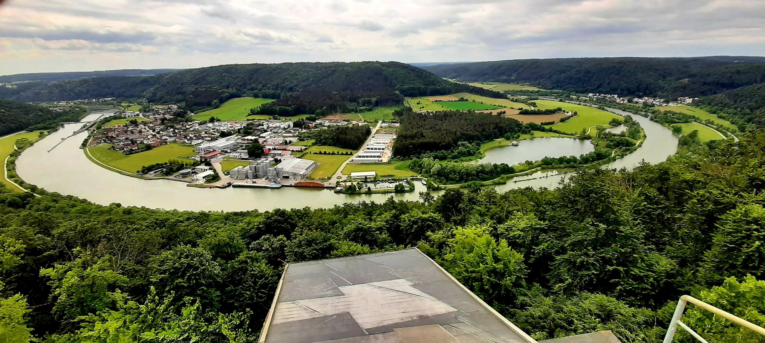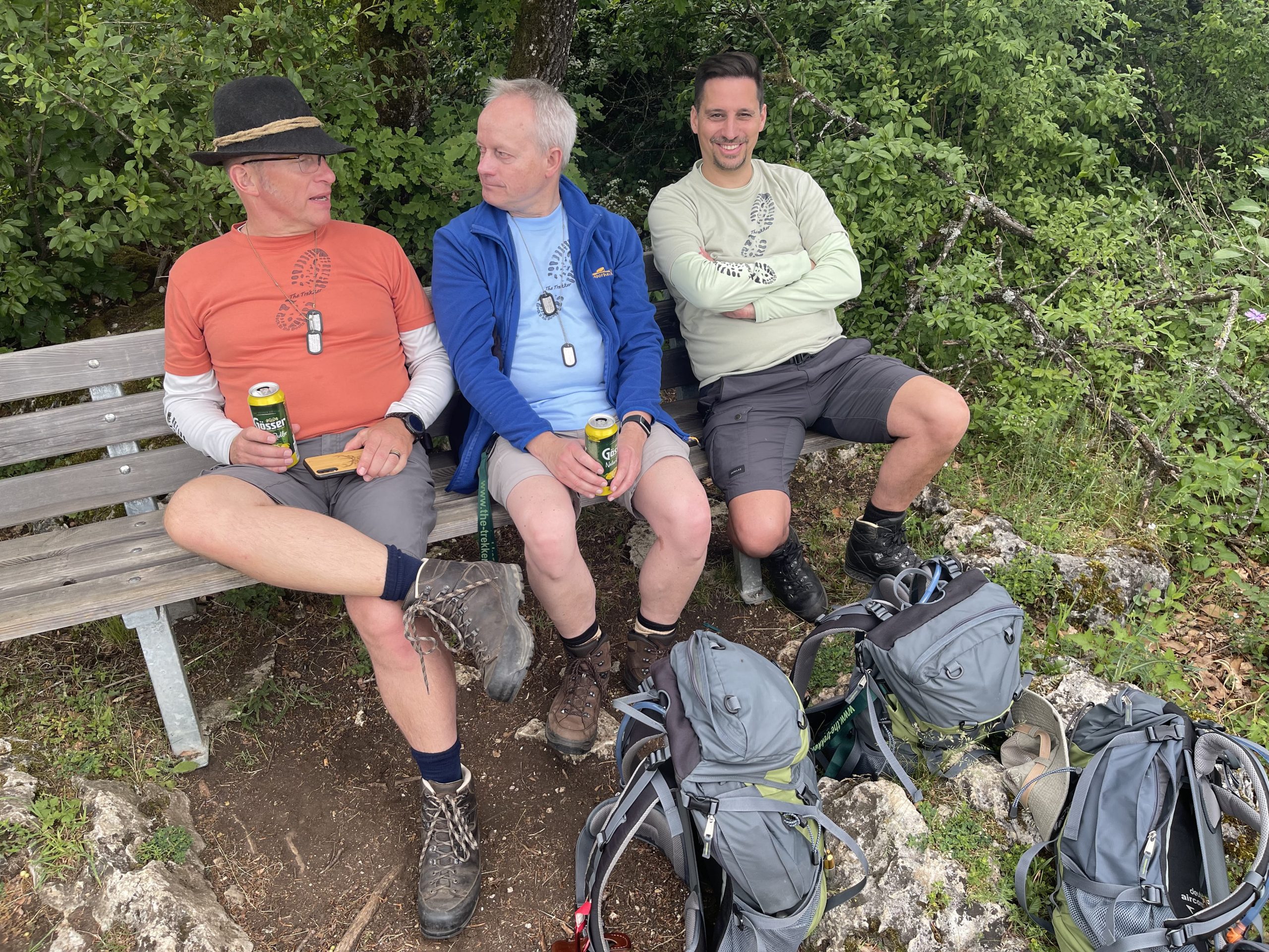Nach dieser Stärkung ging es weiter am Ufer des Flusses. Die landschaftlichen Ein- und Ausblicke begeisterten uns auf der gesamten Tour. Die ersten 2,5 Stunden verlief der Weg ohne nennenswerte Anstiege. Doch dies sollte sich bald ändern. Nachdem wir die Altmühl über eine breite Brücke überquert hatten, lagen direkt nach der Ortschaft Gundelfing ca. 150 Höhenmeter vor uns zum nächsten Ziel. Kurz nach den ersten Höhenmetern kamen wir an einem Rastplatz mit schönem Ausblick vorbei. So viele Eindrücke machten nicht nur durstig, sondern auch hungrig. So kam es, dass wir gegen 13 Uhr an diesem schönen Rastplatz eine Mittagspause einlegten.