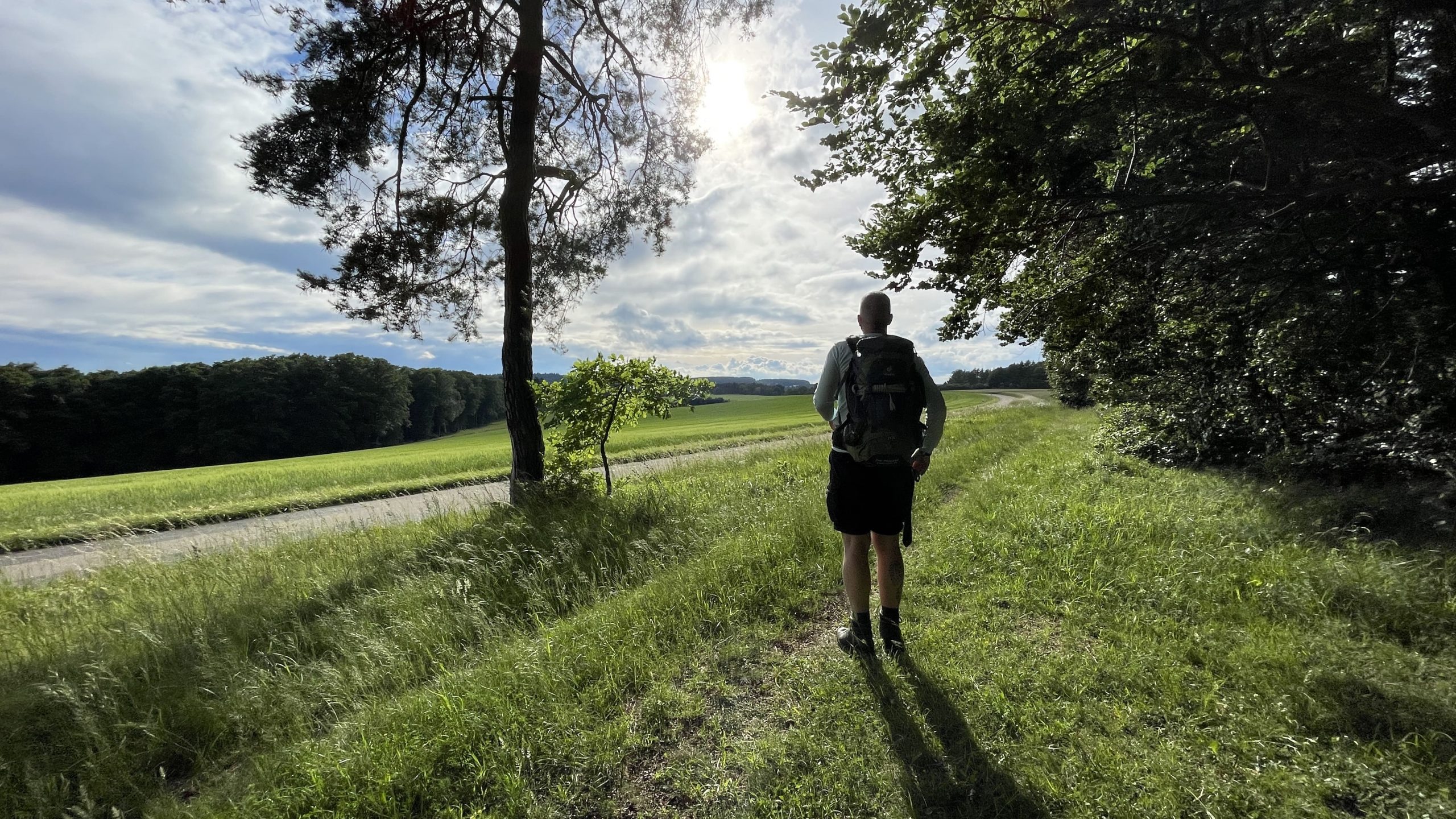 Riedenburg war bereits einen Tag zuvor unser Anlaufpunkt und so erkannten wir die Ortschaft sofort wieder. 7 Stunden lagen bis dahin hinter uns. Seitdem wir gestartet waren. Ca. 1,5 Stunden und ein erneuter Anstieg von ca. 130 Höhenmetern befanden sich noch vor uns. Zeitlich lagen wir gut und so nutzten wir die Burgschenke im Zentrum der Stadt für ein weiteres Bierchen. 30 Minuten später waren wir wieder auf Tour. Raus aus der Ortschaft und erneut hinauf auf die Anhöhe. Diesmal jedoch schon auf der anderen Seite des Flusses, auf der sich auch unsere Unterkunft befand. Kurz vor der Ankunft in Buch hatten wir ein paar wundervolle Perspektiven auf die Felder und die Sonne. Ein perfekter Abschluss für eine tolle Tagestour. Den Abend verbrachten wir in unserem Landgasthof und ließen uns das Abendbrot schmecken.